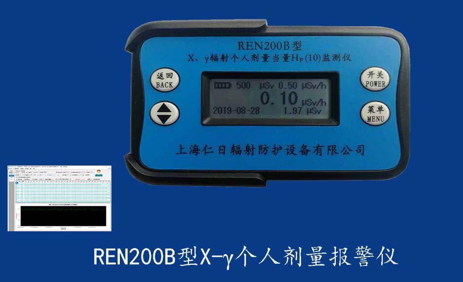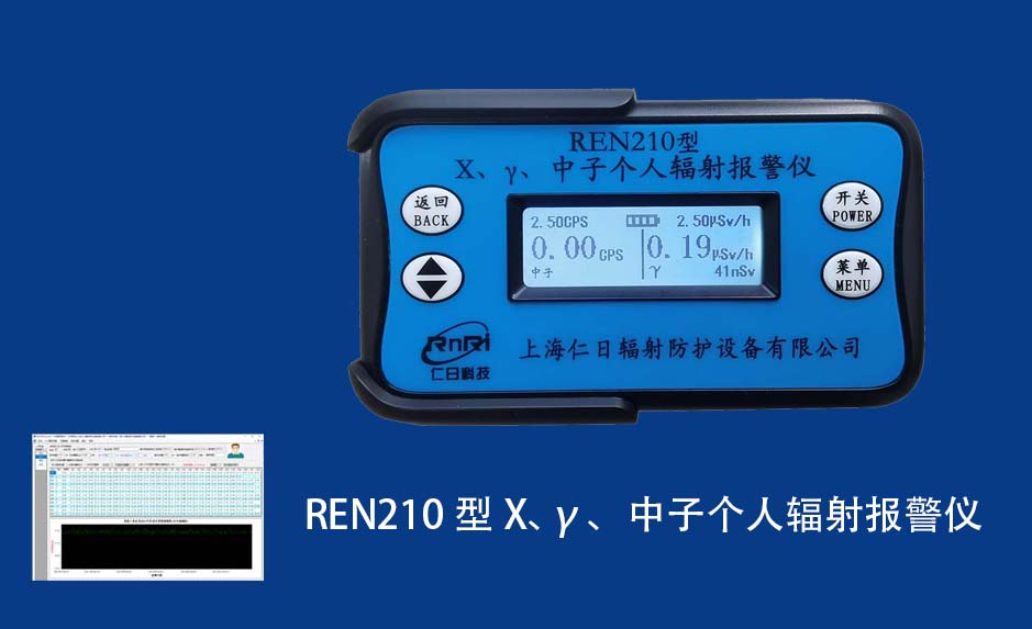 REN210型X、γ、中子個人輻射報警儀內(nèi)置SiPM和鋰玻璃晶體組成中子探測器儀器,采用反照率方式探測中子射線,同時也能探測X、γ射線。因此它可同事監(jiān)檢測X、γ、中子三種射線。能顯示工作場所的劑量當(dāng)量率和累積劑量,更換電池時,日期及累積數(shù)據(jù)能永久保存。可選配RenRiPersonal個人劑量管理軟件,該軟件可存儲多個人的歷史數(shù)據(jù),能記錄日累積、月累積、年累積、輻照時長、計(jì)算平均劑量率、扣除或不扣除本底輻射,且以文字和圖譜的方式展現(xiàn)數(shù)據(jù)。廣泛應(yīng)用于環(huán)保、化工、水泥、煤礦、土木工程、石油、醫(yī)院、疾控、進(jìn)出口商檢、核電、加速器、機(jī)場、中子源庫和其他安檢、邊境控制海關(guān)檢測等領(lǐng)域中的工作人員進(jìn)行個人安全防護(hù)監(jiān)測及放射性提示。